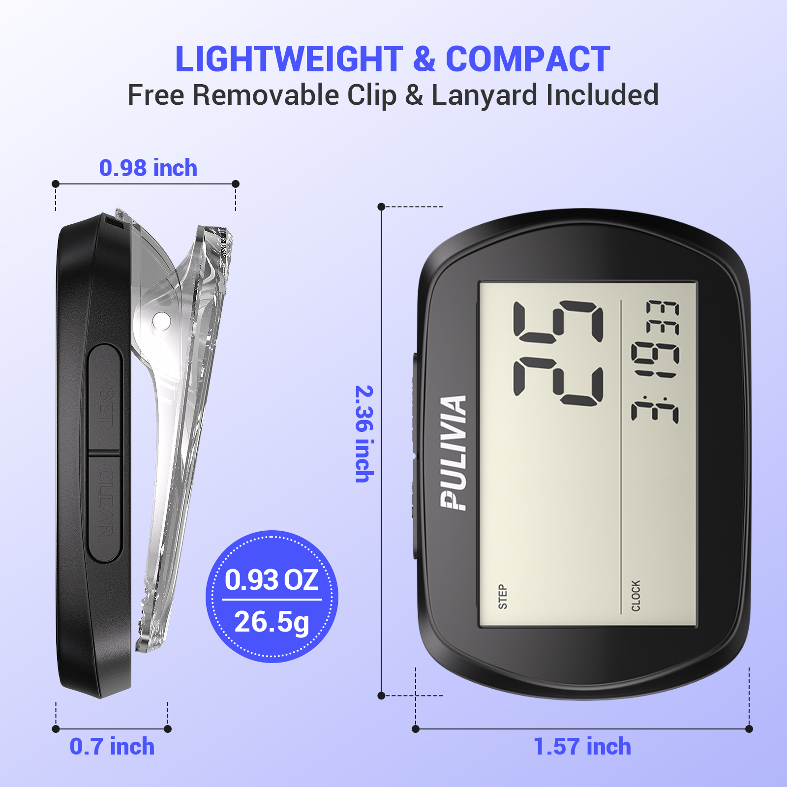 Lightweight Design: Weighing only 0.56 oz (16g), this compact pedometer is easy to carry and wear, ideal for walking, jogging, or daily activities.