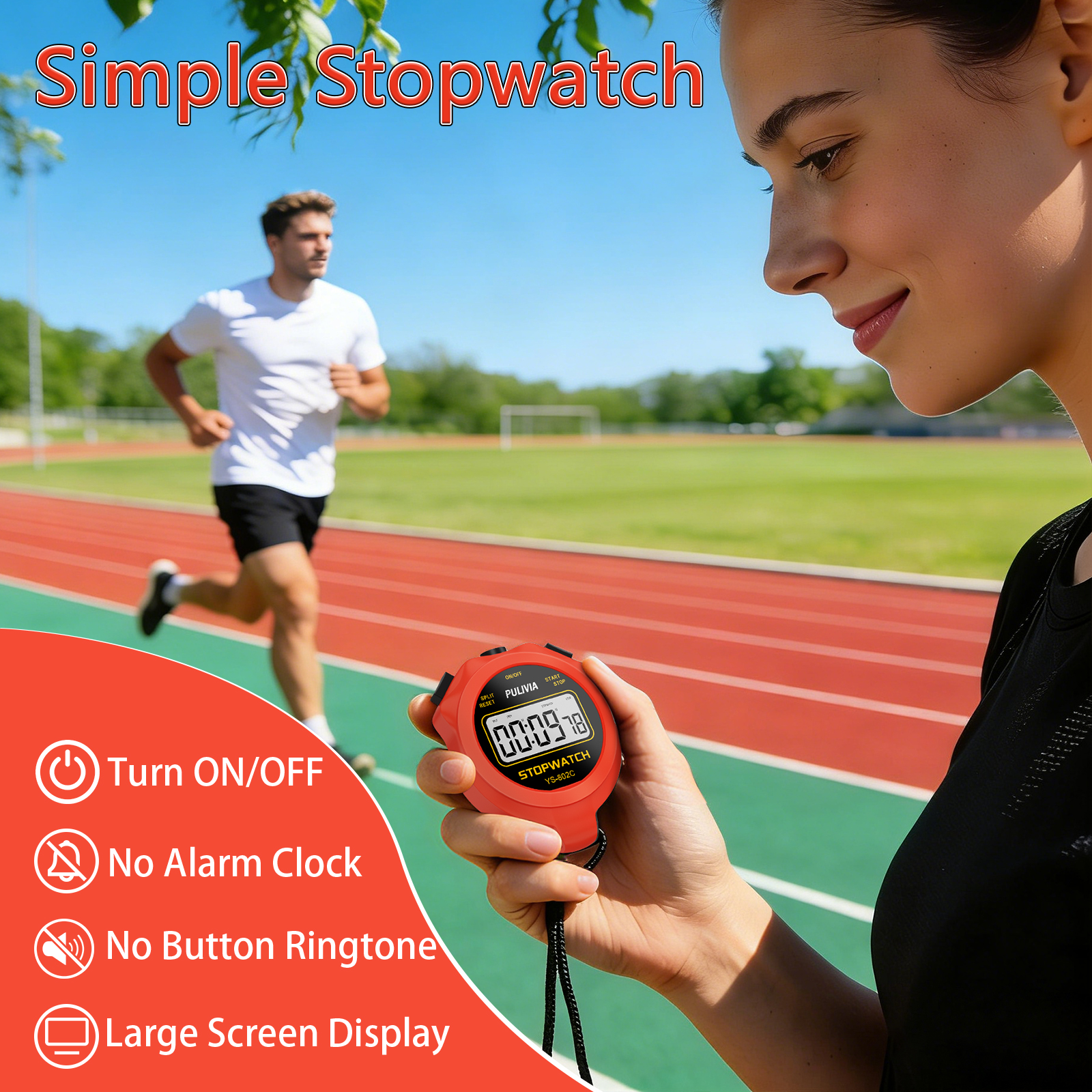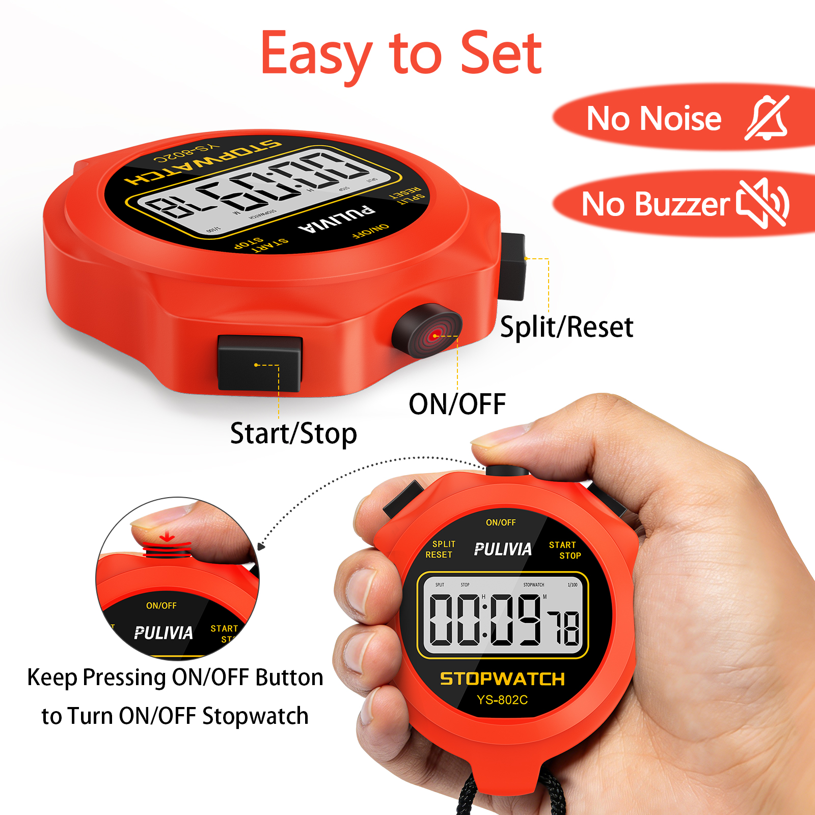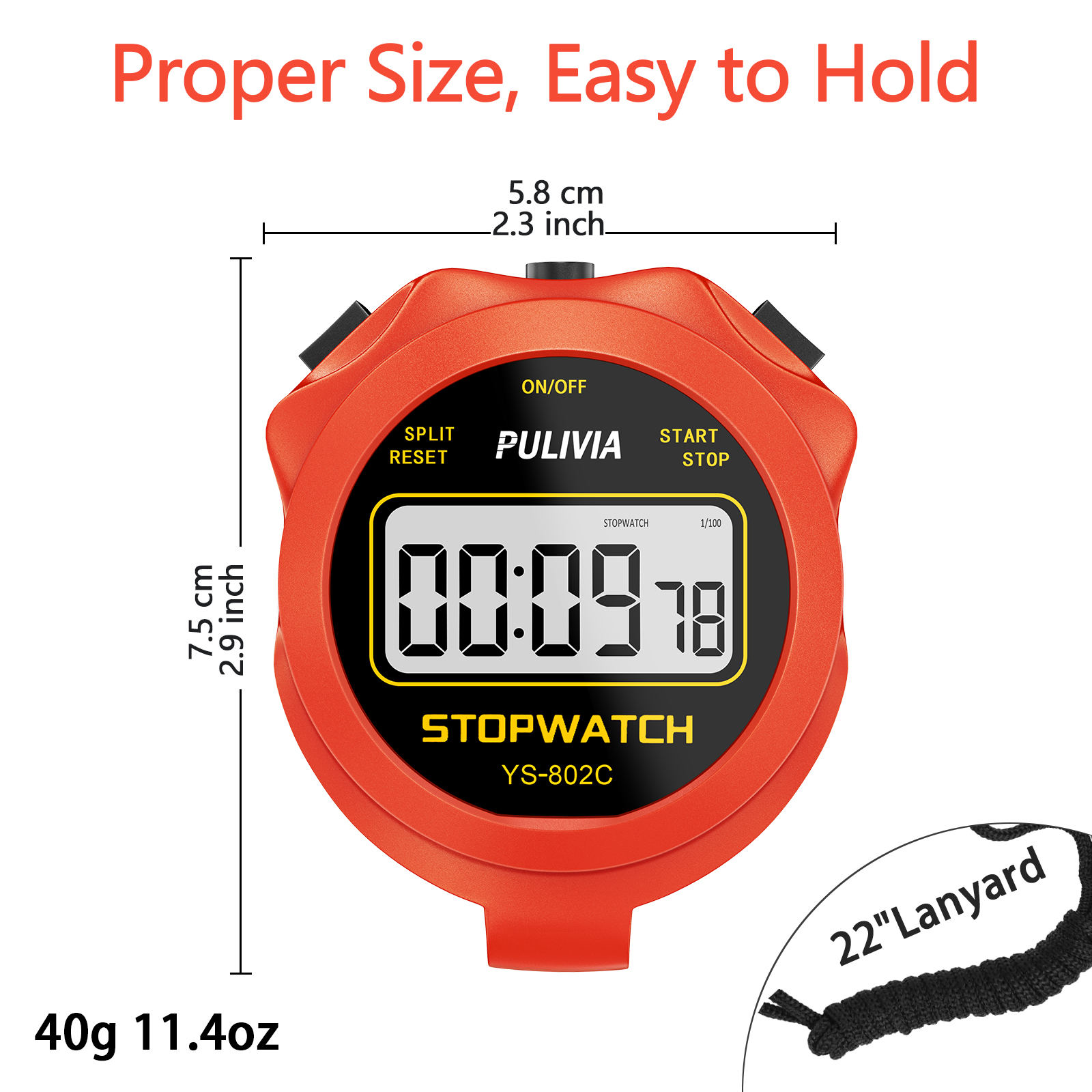 PULIVIA YS-802C Stopwatch Timer Only Stopwatch with ON/OFF, NO Bell No Whistle, Red