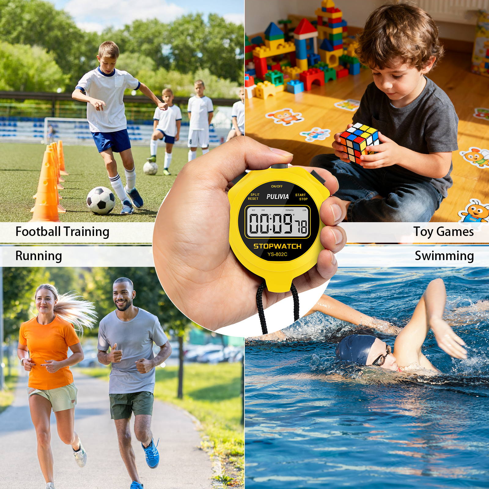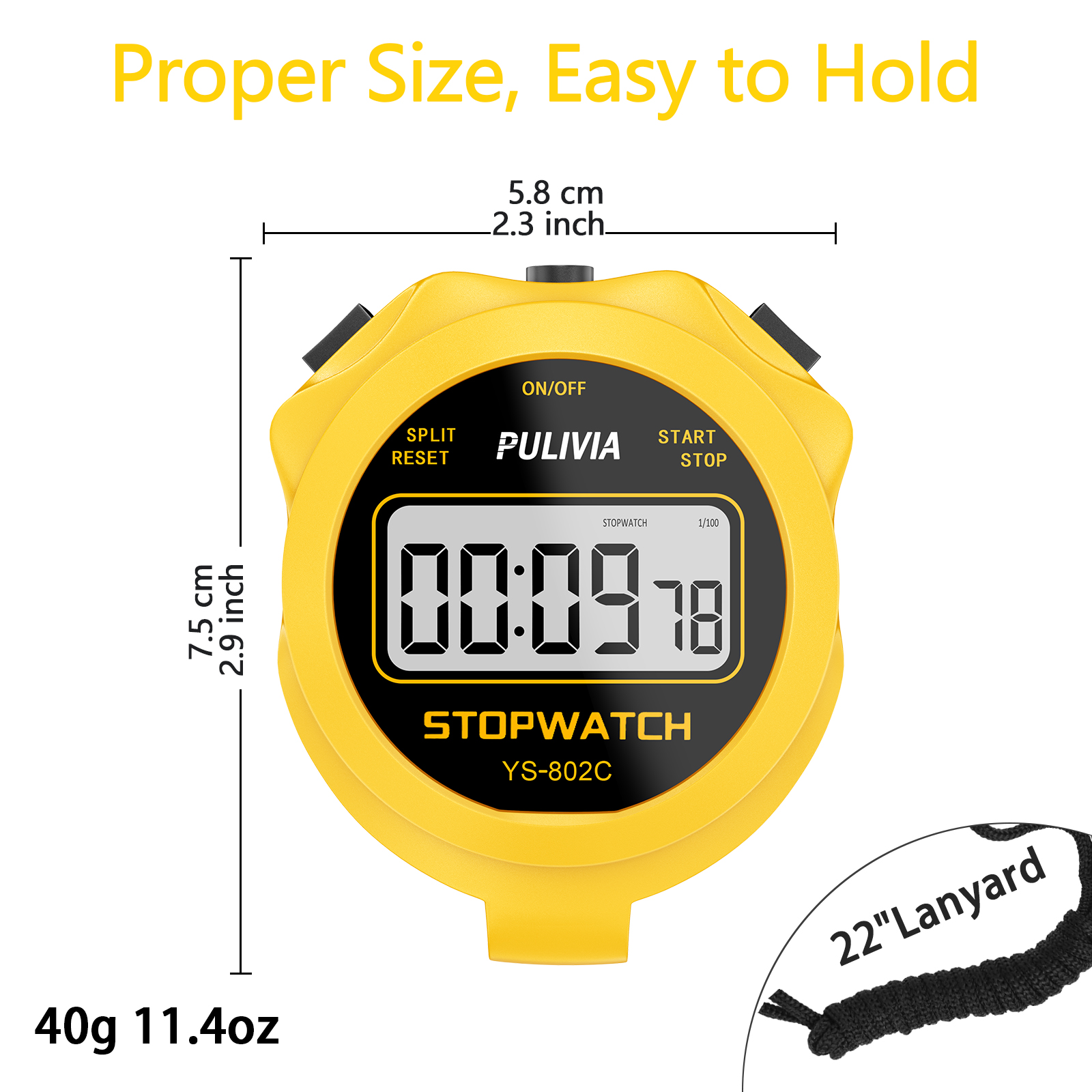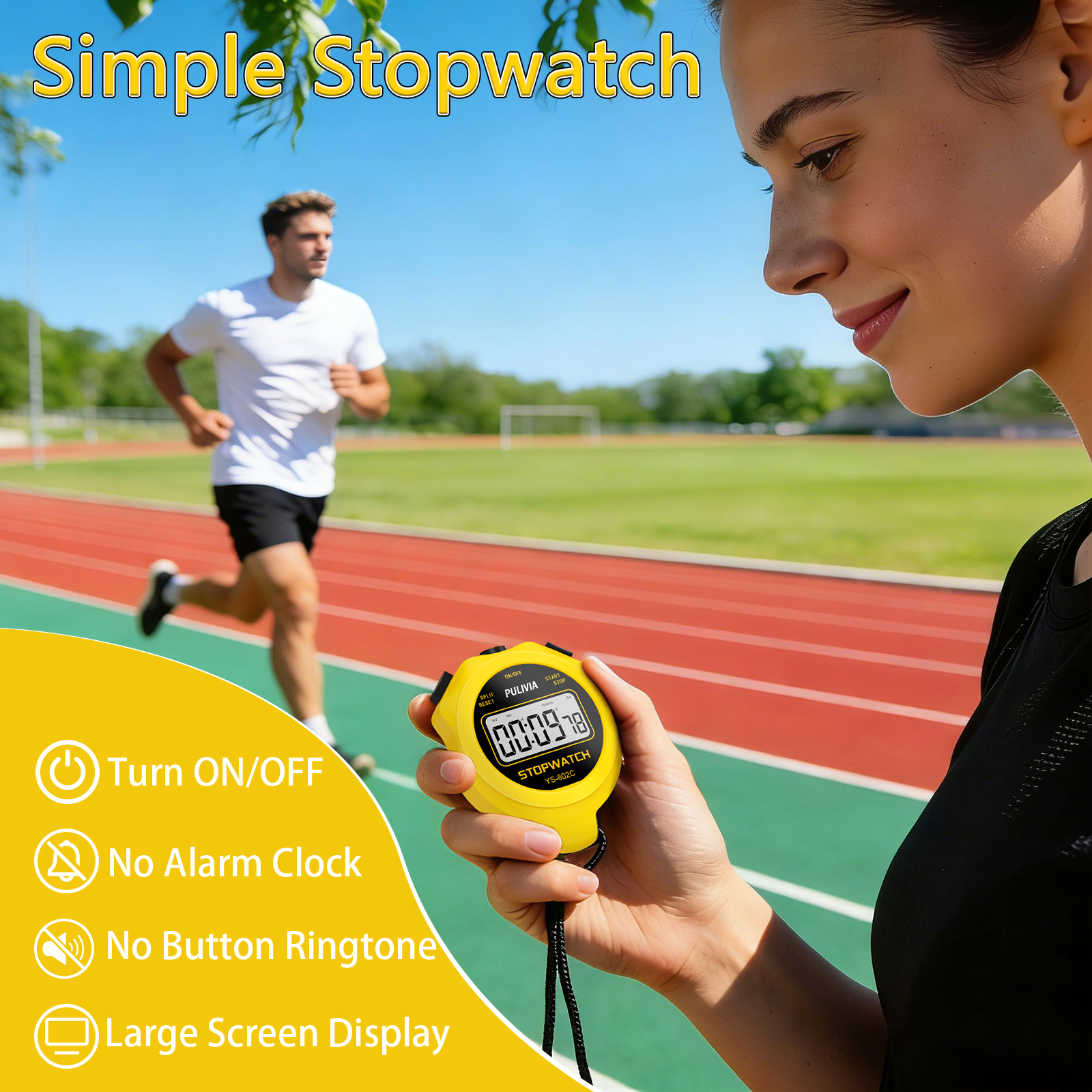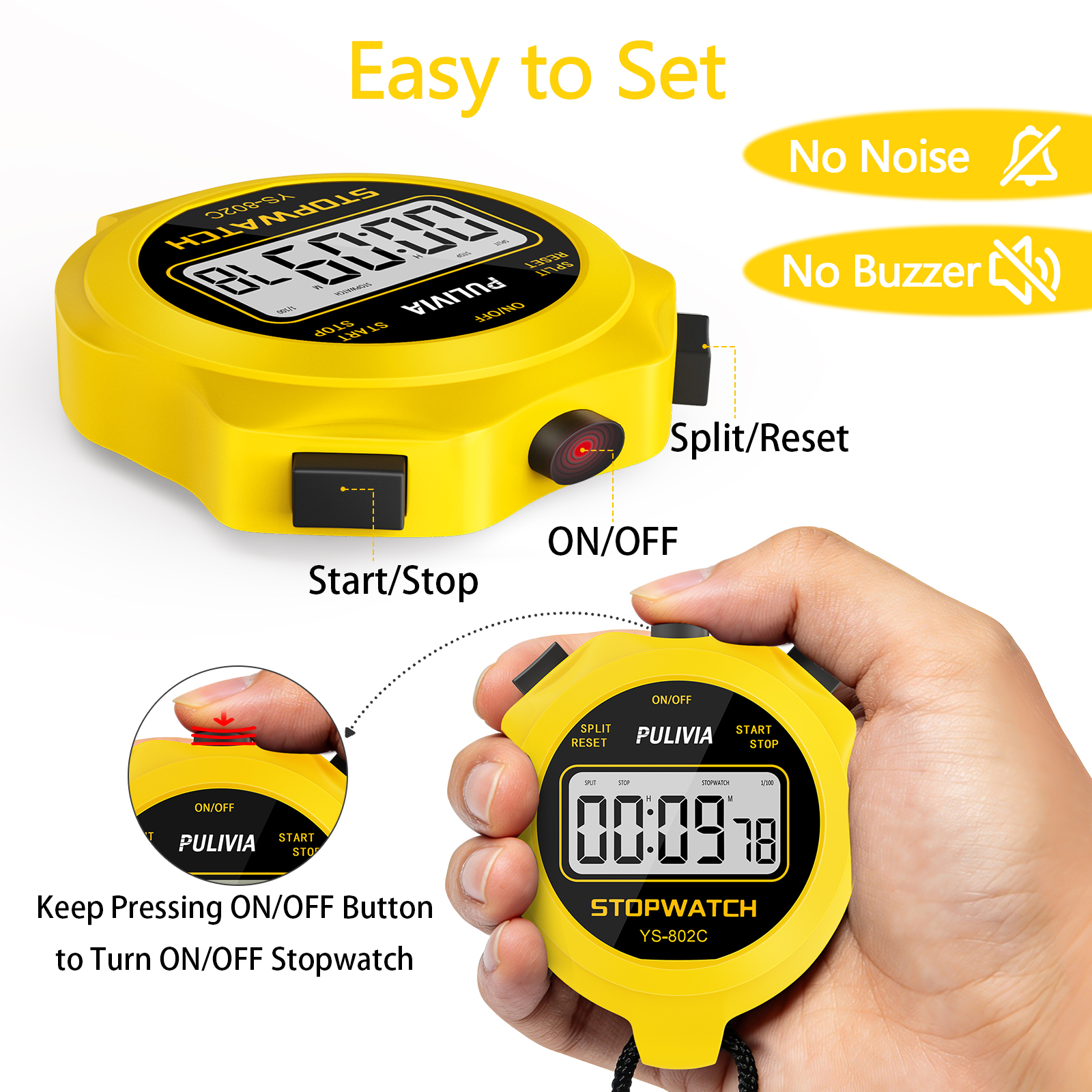 PULIVIA YS-802C Stopwatch Timer Only Stopwatch with ON/OFF, NO Bell No Whistle, Yellow