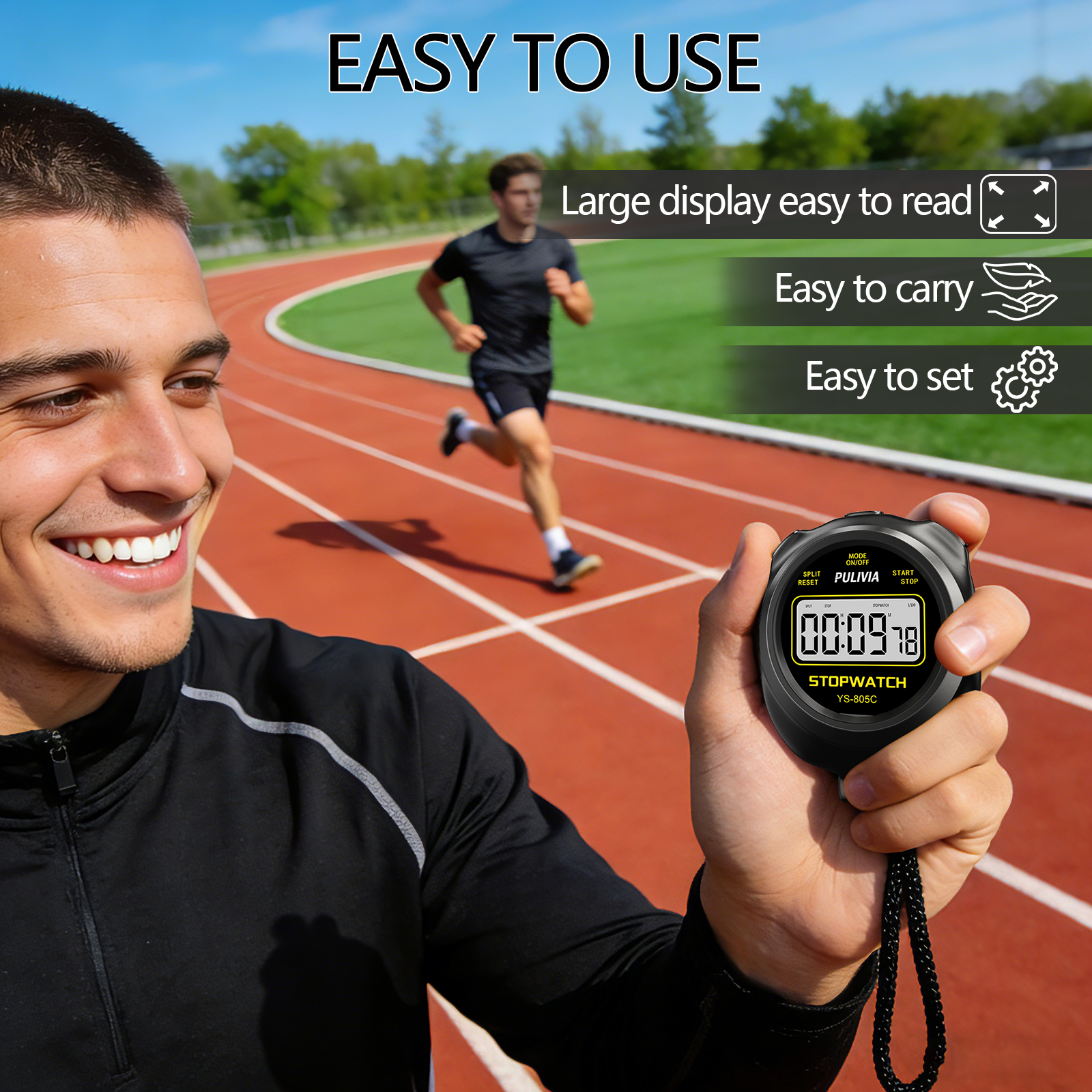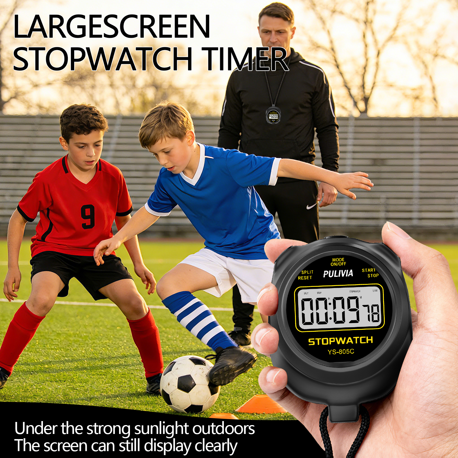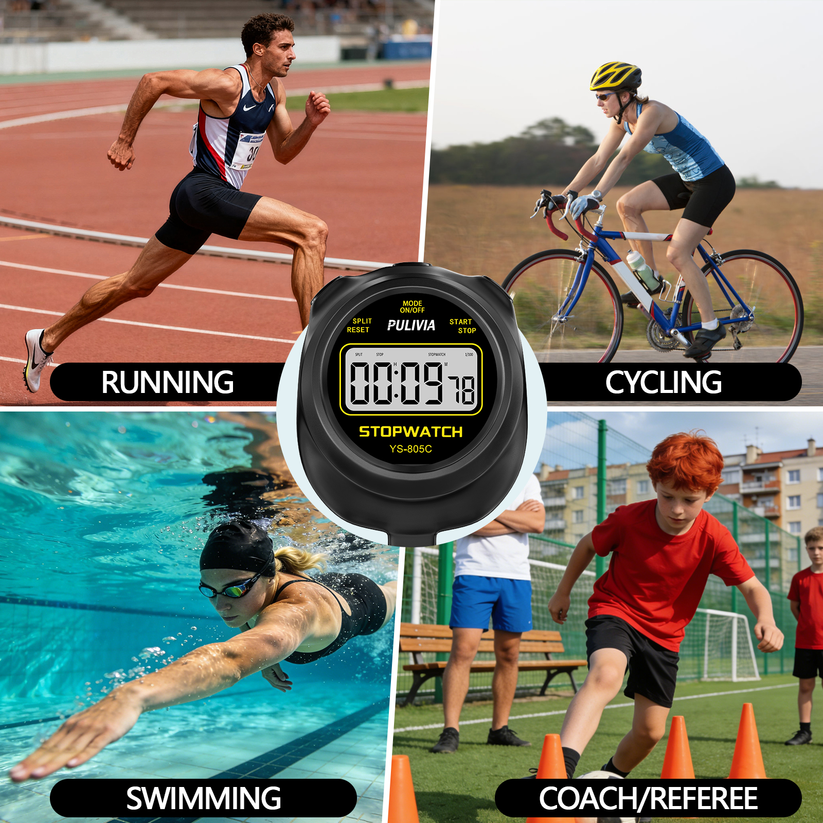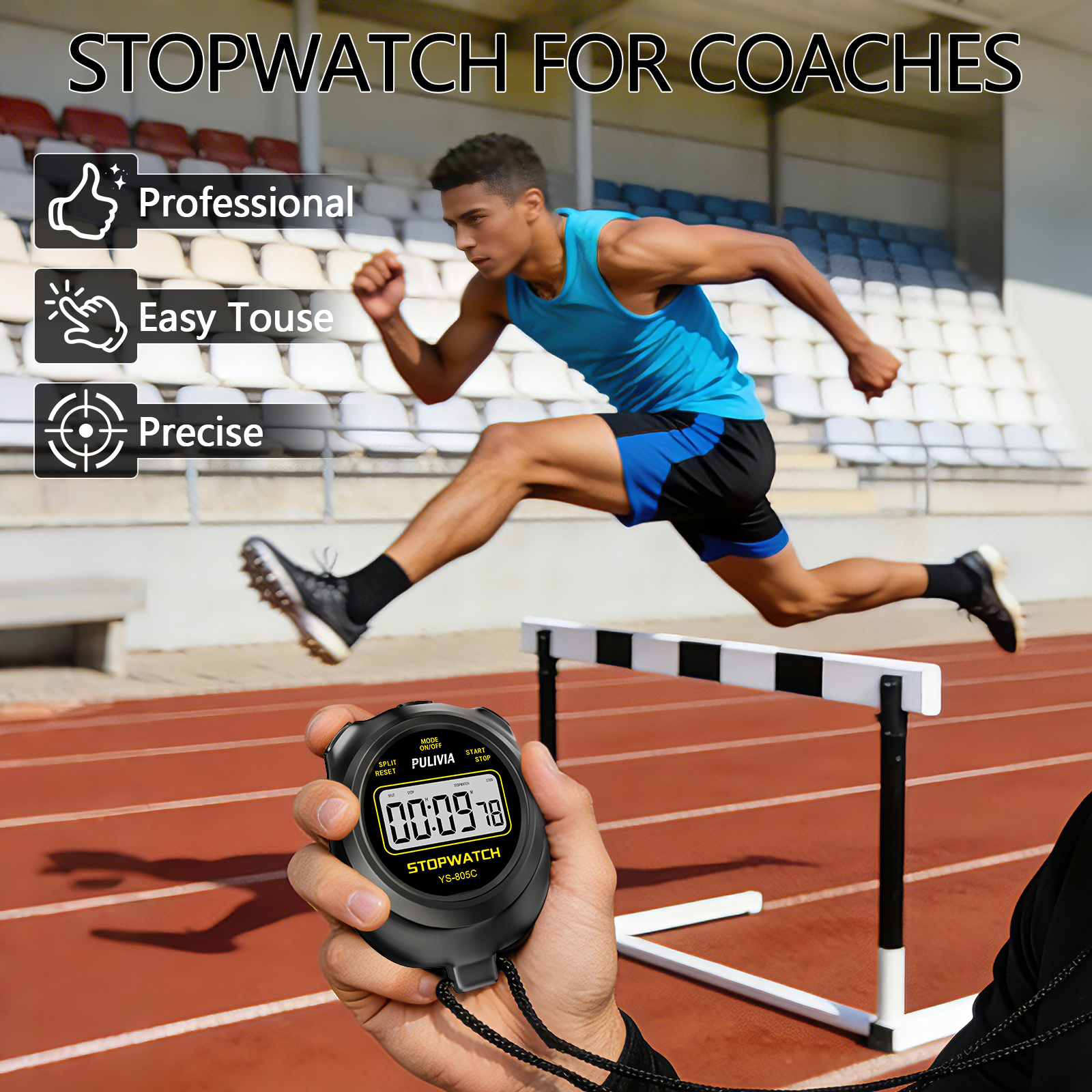 PULIVIA 805C Series Digital Stopwatch is a professional stopwatch with countdown timer function, powered with a AAA battery, easy to change
