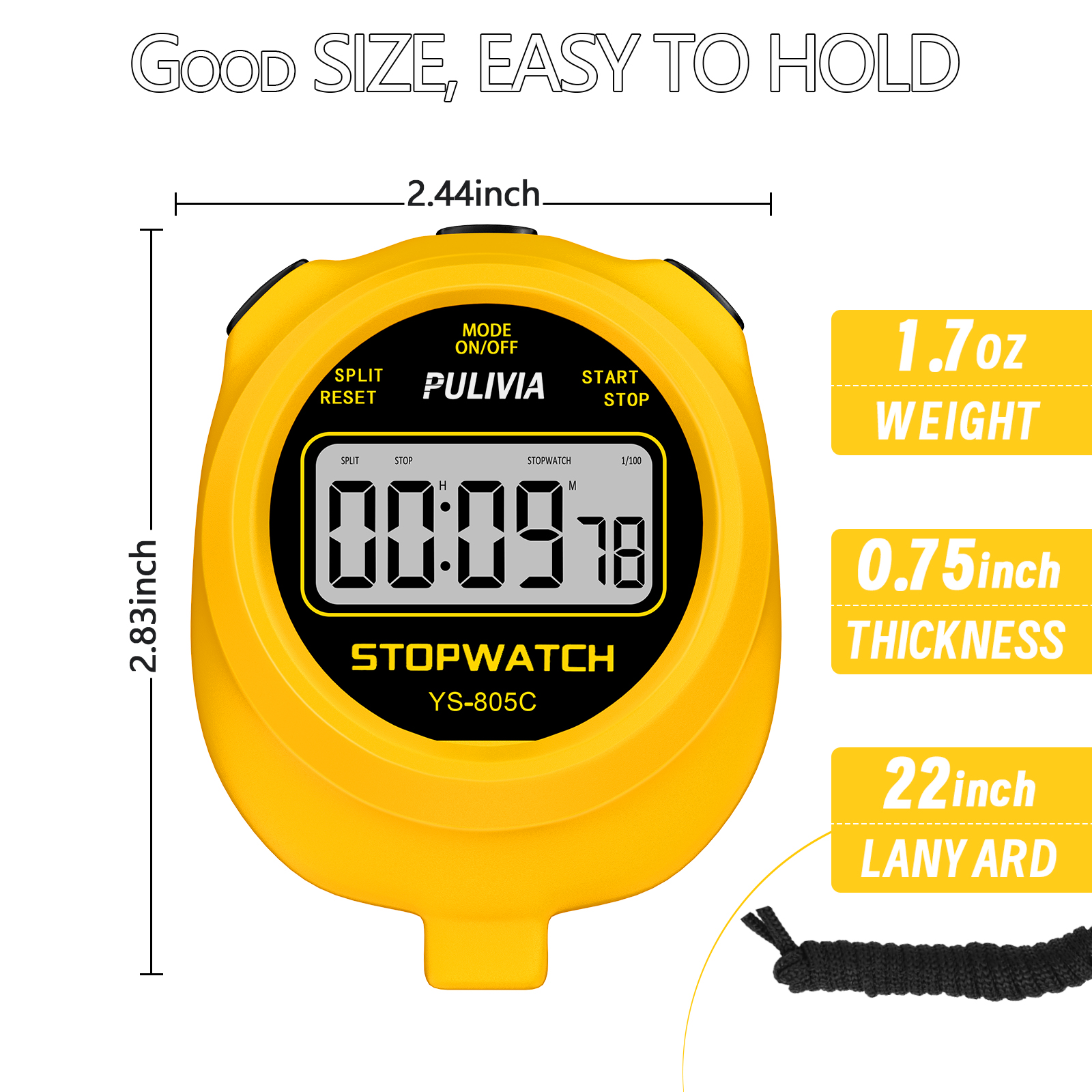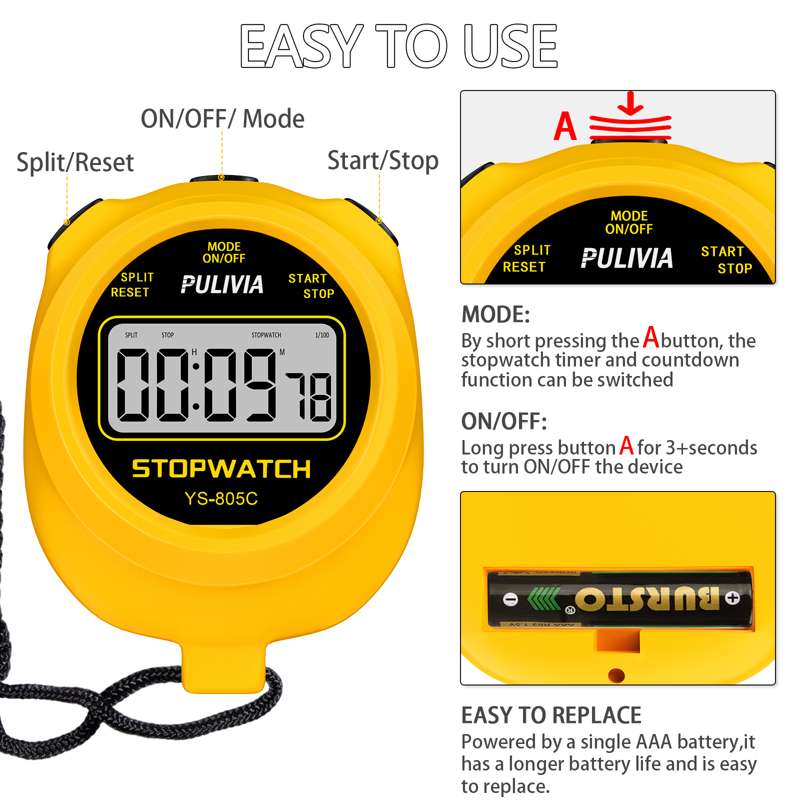 PULIVIA 805C Series Digital Stopwatch is a professional stopwatch with countdown timer function, powered with a AAA battery, easy to change