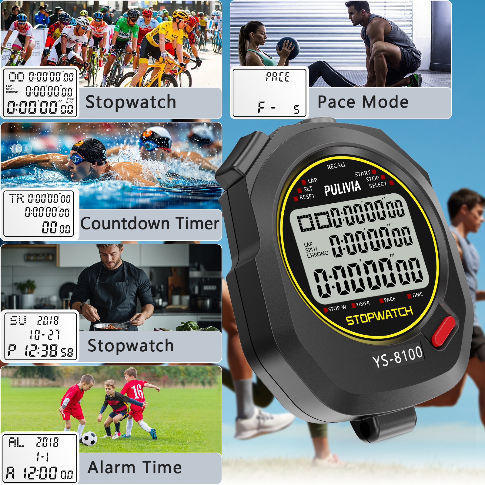 PULIVIA YS-8100 Series Digital Stopwatch is a multi-functions stopwatch, fits for athletes, runners, coach, referee, adults, kids, and suits for various